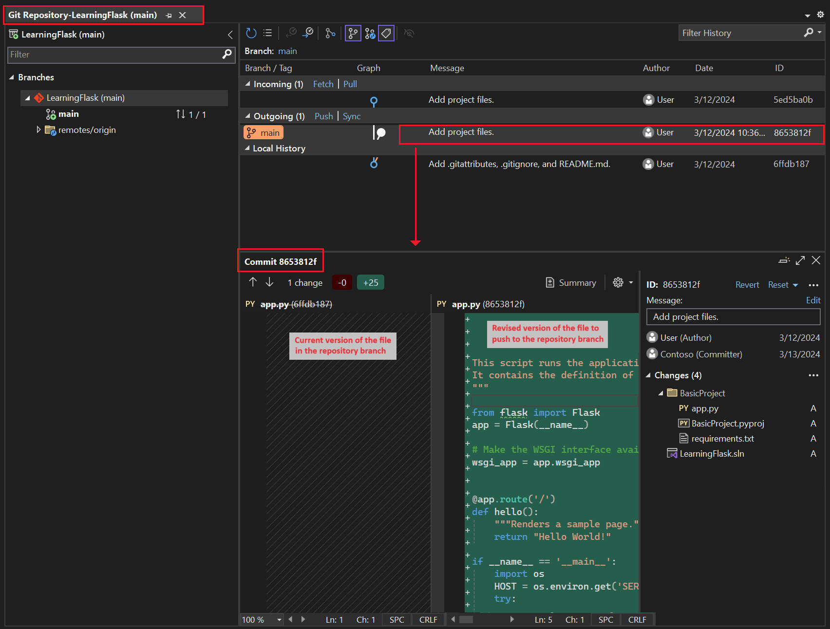 As you work through this tutorial, get into the habit of periodically using the Git controls in Visual Studio to commit and push changes. This tutorial reminds you at the appropriate points.