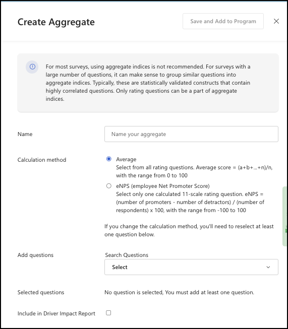 Select the Include in Driver Impact Report checkbox to see this aggregate in the Driver Impact Report.