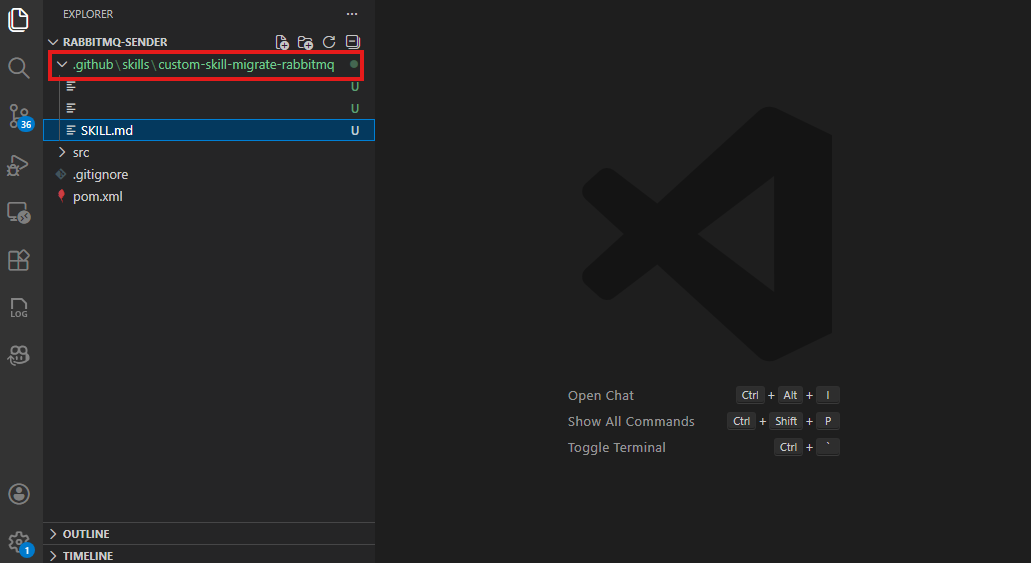 Si vous avez précédemment utilisé des tâches personnalisées , stockées dans .github/appmod/custom-tasks/ du projet ou des données utilisateur Visual Studio Code , l’extension les migre automatiquement vers le nouvel emplacement .github/skills/ du projet lors du premier chargement.