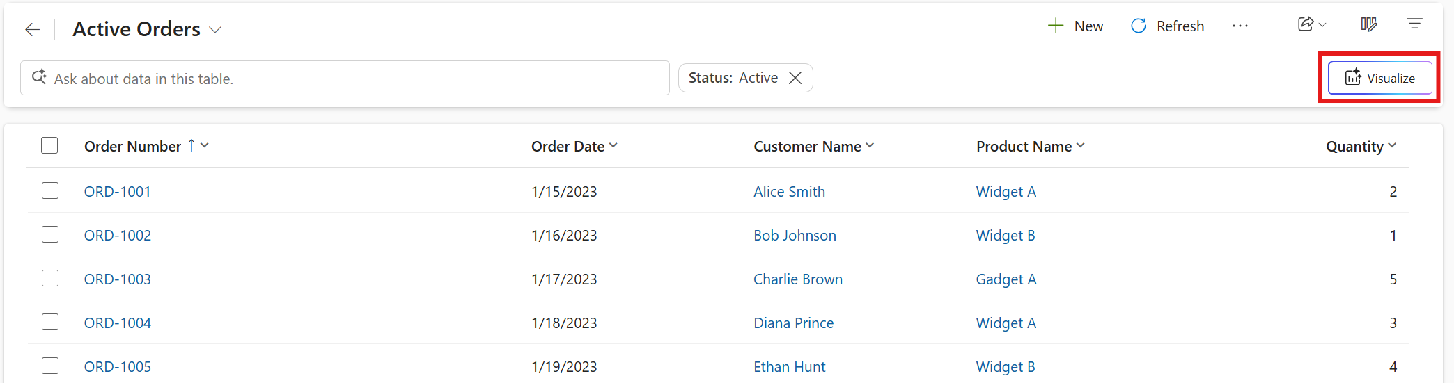 Usa i prompt in linguaggio naturale nella barra di ricerca nella pagina della griglia per visualizzare i dati in una visualizzazione. Di seguito sono riportati prompt di esempio che consentono di comprendere i tipi di richieste supportati.