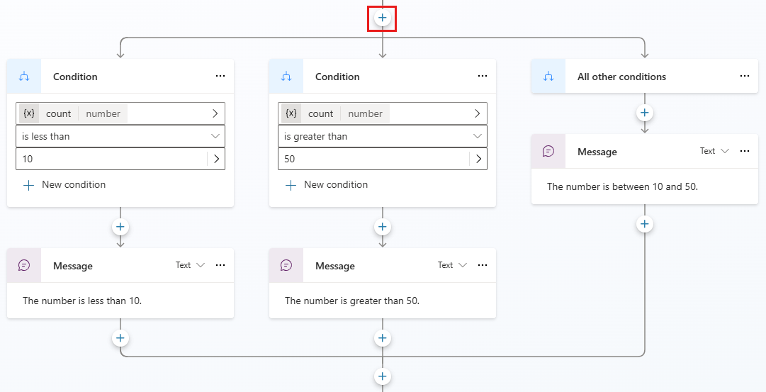 Per aggiungere un altro ramo Condizione, seleziona l'icona Aggiungi nodo