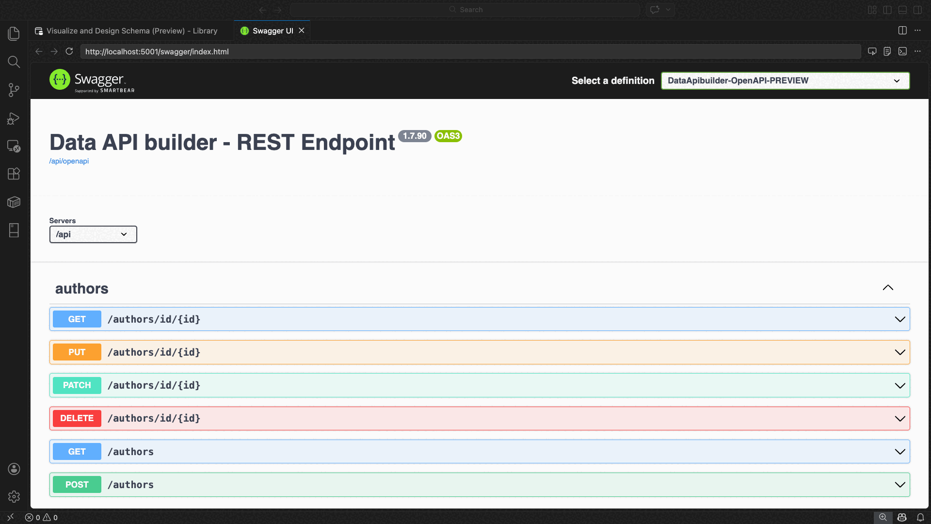 L'estensione MSSQL per Visual Studio Code include un'interfaccia utente integrata per il generatore di API dati, quindi è possibile creare endpoint REST, GraphQL e MCP per le tabelle di database SQL senza scrivere file di configurazione o uscire da Visual Studio Code. È possibile selezionare le tabelle da esporre, configurare le autorizzazioni CRUD, scegliere i tipi di API, visualizzare in anteprima la configurazione generata e distribuire un back-end locale basato su Generatore API dati, tutto da un'interfaccia visiva.