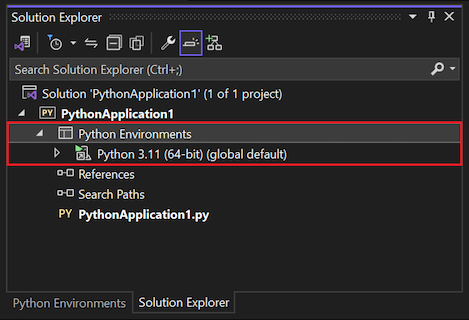 O Visual Studio fornece dois locais para exibir informações sobre ambientes do Python: