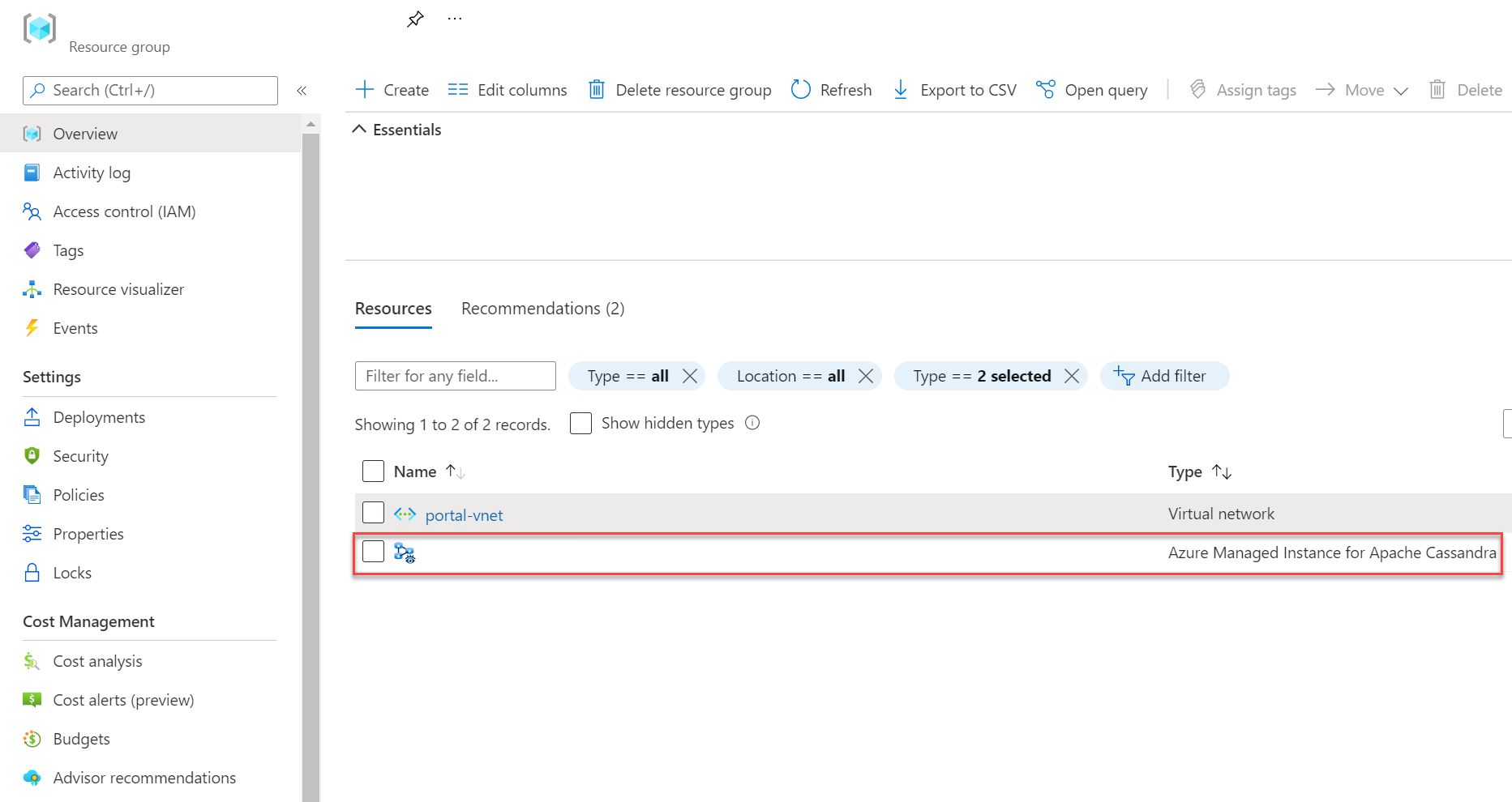 After the deployment finishes, check your resource group to see the newly created managed instance cluster.